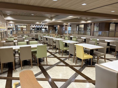 きっと混むだろうと乗船してすぐにレストランに。まだ空いててすぐ食べれた。