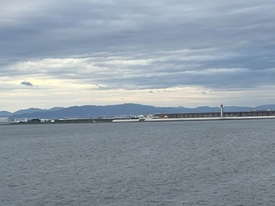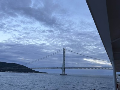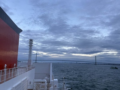 5時に外に出てみたら、15分にくぐるはずの明石海域大橋をすでに通り過ぎていた。別に真下をくぐるところを見たかったわけでもないけれど。一応見えたし。