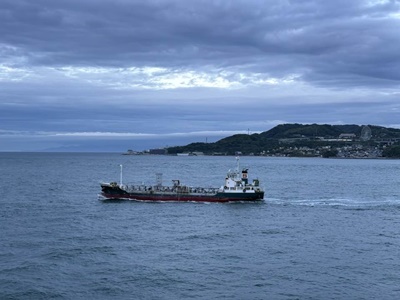 並走する船と淡路島。