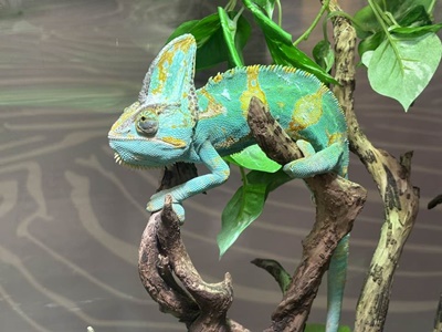 エボシカメレオン。日本語では「烏帽子」だが、英語では「veiled」ベールをかぶった、か。