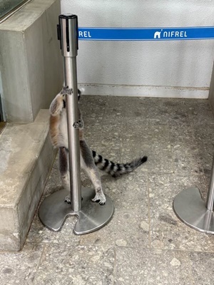 足元をワオキツネザルが歩いてて、踏みそうになって変な着地したら自分の足を傷めた。