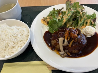 昼食も博物館内のレストランでハンバーグ定食。1680円。