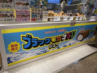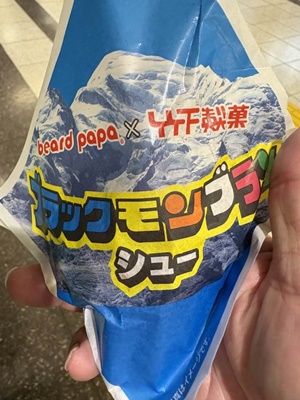 東山線で栄に。地下街でビアードパパがブラックモンブランとコラボしてるの発見。