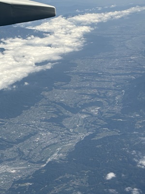 8時5分搭乗。しかし何があったのか37分にようやく始動。出発機で滑走路混雑だそうだ。9時1分離陸。