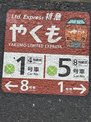 駅弁買って24分発のやくも9号待つ。駅名標がやくも仕様。