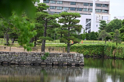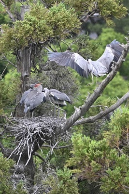 天守から見たらその辺の木のてっぺんがアオサギの巣になっていた。