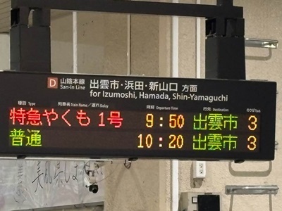 9時過ぎにチェックアウトして20分松江しんじ湖温泉駅に。