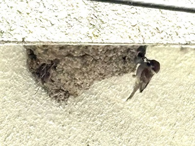 あ、ツバメの巣!と思ったら飛んできたのはスズメだった。中の雛もスズメの雛かな?