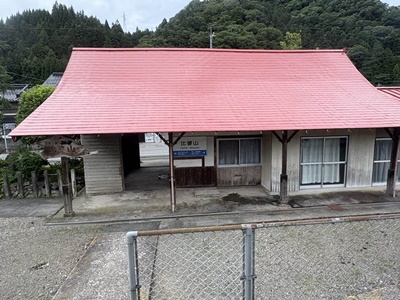 40分備後落合発車。備後庄原過ぎた辺りから雨降り出す。比婆山駅舎。