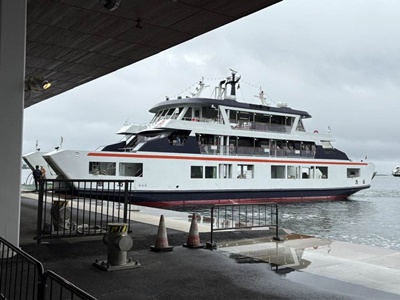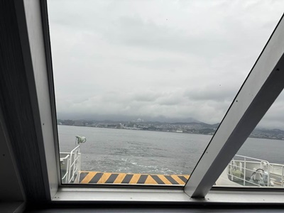 着岸。フェリーはICカードも利用可能に(松大汽船も対応している様子)。これは便利。