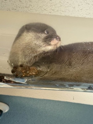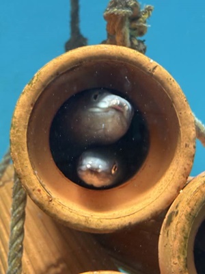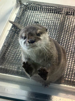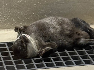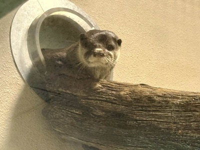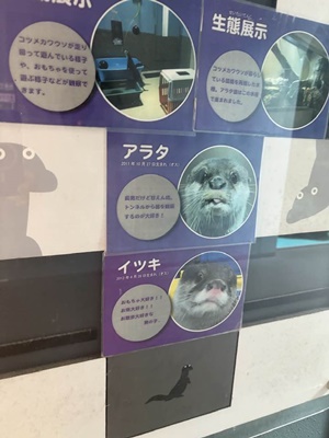 カワウソ舎に。イロハが亡くなって、展示はアラタとイツキの2頭のみ。エイタとウルトもいるはずだが?