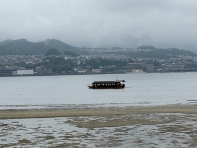 JR宮島フェリーがこっちに向かってくる。雲で弥山が全く見えない。