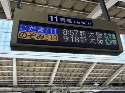 6時に自然に目が覚めたのでLazyFit。シャワー浴びて出発。ゴミを出し忘れて戻ったので間に合わないかなあと思ったがなんとか7時29分発の小田急に間に合った。新宿で朝マック、中央線に乗り換え、東京駅には8時20分着。こだま711号は57分の発。
