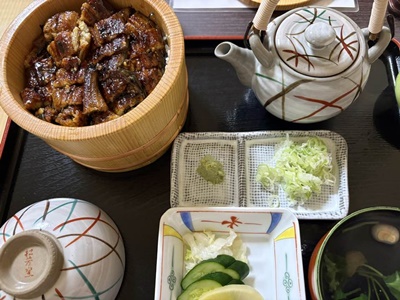 11時ではまだ結構すいており、1人客は奥の座敷いす席に。お櫃うなぎ茶漬け4730円。去年より330円の値上がり。
