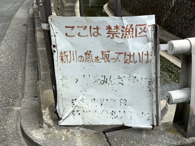 「新川の魚を取ってはいけません」とあるが、流れもなく、魚が住んでいるようには見えない。昔はもっと立派な川だったようだが。