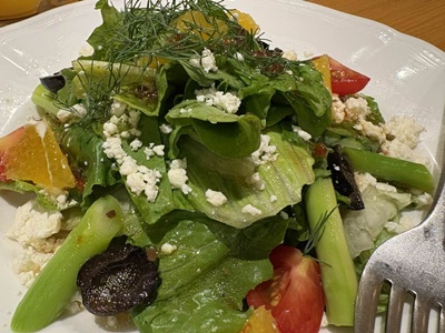 紺屋町バス停まで歩いてえんてつバスで駅に戻る。遠鉄百貨店本館8階の「さわやか」に行くと「120分待ち」の掲示。現在14時50分。ちょうどいいくらいか。ということで予約受付。3階の「星乃珈琲店」で時間つぶす。16時にアプリが「来店してください」の表示になったので8階に戻る。16時10分着席。セットのサラダではなく「農園サラダ」。これがうまい。