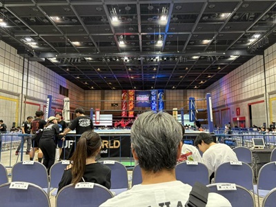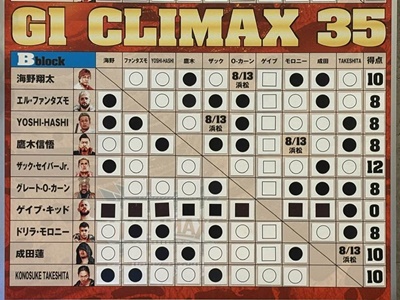 展示イベントホールに入る。Bブロックの星取表。今日で決まる。