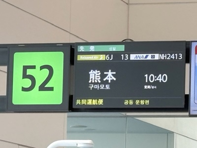 土産いいのがないので予定1時間早めて17時25分熊本駅発のリムジンバスで空港に。エスカレーターで平田とすれ違う。阿蘇くまもと空港は保安検査場抜けた先に店が多く時間つぶしに事欠かないつくり。到着ロビー側には少ないがゆっくり座って食べれる形式と分かれているのかな。