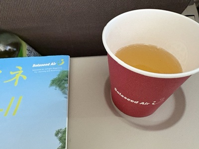機内ドリンクはアゴユズスープ選択。YouTube何もダウンロードしてないので機内でやることがない。かと言って寝れもせず。