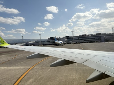 ソラシドエア久しぶり。10時21分搭乗、38分始動。滑走路に鳥がいるということで少し離陸遅れる。
