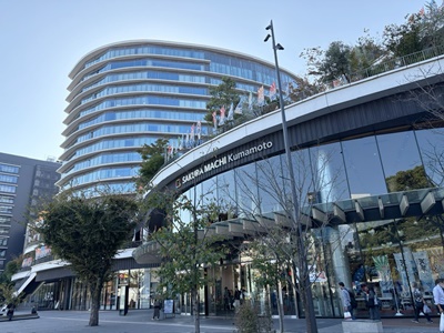 サクラマチクマモト外観。旧バスセンター跡の一部は公園に。