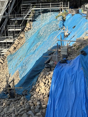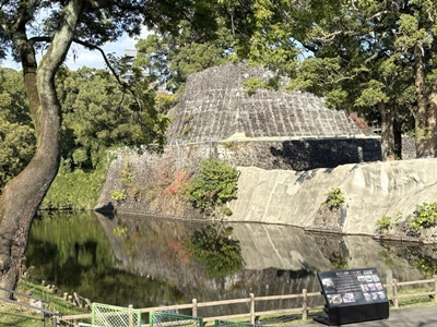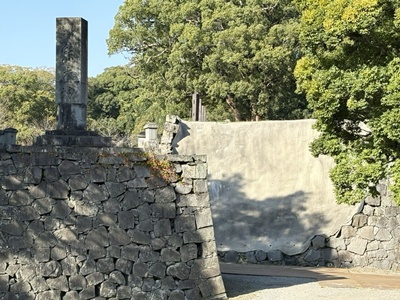 一部はさらなる崩落を防ぐために石垣にモルタルが吹きつけられていた。