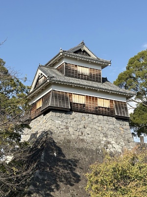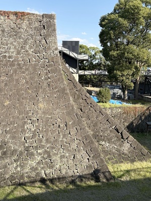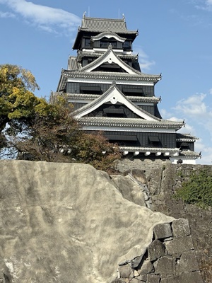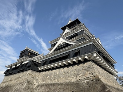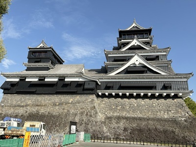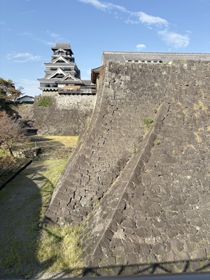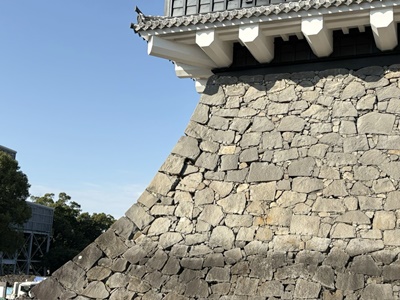 天守と石垣。天守は観光資源でもあり街のシンボルでもあるので2020年度には震災前のデザインで復旧された。最上階元に戻す(展望台なくす)かと思ったけどそれはないか。