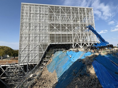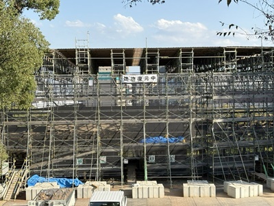 田子櫓、十四間櫓、七間櫓、四間櫓、源之進櫓復旧工事中。