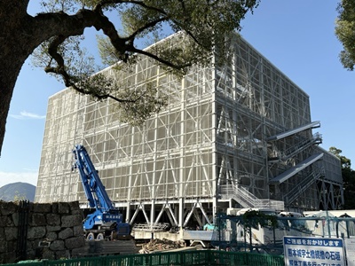 宇土櫓は解体工事中。外観は保っていた感じだったが、中は壊れてたという話だったからな。