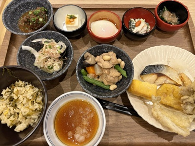 昨日22時に寝たせいか1時過ぎに目が覚め、寝れないもんだからポイ活やったら完全に眠気が覚め、5時過ぎにLazyFit、朝から腰痛かったが動くようになったので、5時半に風呂。6時半から朝食、和食。丼も気になったが高菜飯に。部屋に帰ってお茶飲んだら寝る。どうせ雨だし。