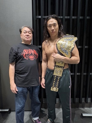 15時15分試合終了。TAKESHITAとの2ショット撮影に。