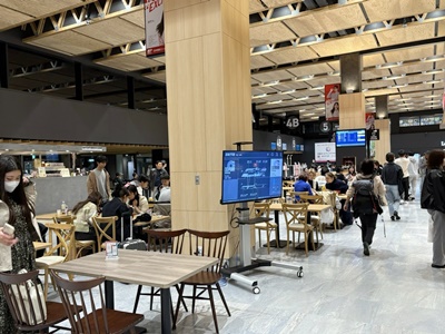 フードコートと搭乗口がこんなに近い空港ってある?しかも出してる料理が馬料理とかラーメンなので匂いが搭乗口まで漂ってくる。