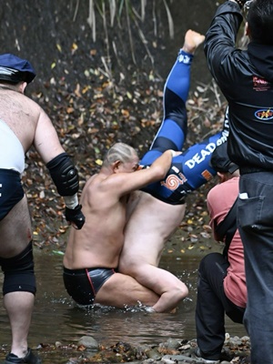 最後はみのるが光留を渓流へのゴッチ式パイルドライバーで水中カウント3。試合時間は1時間半。