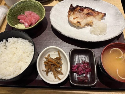 昼食は八重洲の「初藤」に入ってメヌケの塩麹焼き定食、1200円。