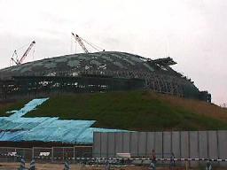 車は千歳から札幌に。途中、建設中の札幌ドームを見る(右写真)。地下鉄東豊線の終点・福住駅からほんのちょっと。交通の便はよさそうだ(って、行く気なのか!)。