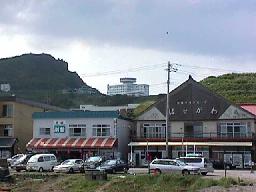よくある港町の風景。左が我々が入った「潮騒」。店の前ではにしんとか焼いてたりする。