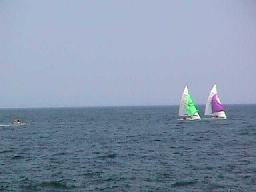 海岸の方。ちょっと波が荒いが泳ぐ人は泳ぐ。