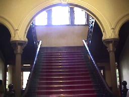 2Fに上る階段。デジカメだと、差し込んでくる光で遊ぶったってこの程度だな。