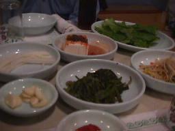 ひーちゃんもばんばん食べてます。実際上の写真の量で「3〜4人前」と言われてもちょっと少ない。じゃあ追加しようか、と値段を聞くと「1人分1万ウォン。」一瞬ビックリするが、よく考えたら1000円である。安い安い。