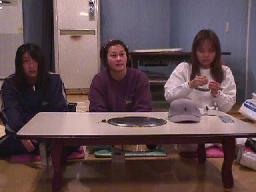 カーテンは落ちてしまいました(右写真)。ちなみにヒザの悪いカナちゃん、首の悪いひーちゃんはこのゲームはパス。日向も「私も・・・・」と言いかけたが、永崎さん、ヤマモの2人から同時に「できるでしょ!」と突っ込まれてやってます。この勝負は美咲チームの勝利。