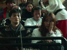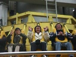 ここで解散、14時20分の再集合までは自由時間。チキンな我々はジャイロドロップには挑戦せず、余った1枚でヤマモらと「ホーンテッド・ハウス」へ。ところがこれ、「お化け屋敷」ではなく、暗闇の中、音と声(とちょっとした風)でおどかす奴(それだったら無駄だよなあ、と事前に話してはいたんだが)。韓国語がわからんもんで、「イサンビンチョレヨー!(てきとう)」なんて叫ばれても恐くも何ともないし、むしろ笑ってしまう。