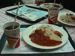 昼食は「世界各地の食事が楽しめる」ということだったが、なぜかピラフにしてしまう。しかしチリソースは気合いが入っていた。食事の後、ヤマモ一行と分かれてロッテ・デパートを歩き回る。しかし、さすが「世界一の規模」の屋内遊園地のある建物、すぐに自分がどこにいるんだかわからなくなってしまう。中央が遊園地で大きな「吹き抜け」みたいになっているもんだから、真ん中を突っ切ることもできないし、エレベーターも極端に少ない。仕方がないので外に出て、集合場所まで外をぐるーっと回る。これで遅刻したら恥ずかしいなあ、と思ってたが、なんとか時間前に永崎さんに出くわしたので助かる。自分だけか、と思ったら、バスに戻ってくる面々が口々に「迷った。」何回目かの福岡ですら迷ったらしい。集合時間に来れなかった者も4名出る。