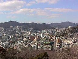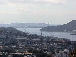 帰りに風頭公園で降ろしてもらい、再度亀山社中にチャレンジすることに。天気も良く、対岸の稲佐山(左写真)もはっきり見える。「風頭」とはよく言ったもので、風が吹きあがり、また街の方へと吹き降ろす。