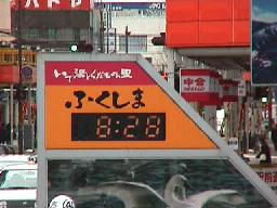 駅弁買って乗り込む。さすがに30%引き(仙台以北は半額?)とあって早朝と言うのに満員。福島までは各駅停車のため2時間。中で寝るか。まずは駅弁。季節限定「春らんまん」(1000円)は東京駅で売ってる駅弁としてはなかなかいいできだ。腹も満たしたので寝れるかな、と思ったが、なぜか寝れない。うーん。持ってきた紙プロとナイタイ読む。郡山近くになってようやく眠くなる。あと少しなのに。福島駅近くでちゃんと目が覚め、下車。福島駅に着いたのは8時28分(右写真)。腹は減ってないし、店は開いてないし。時間はたっぷりあるんでまずは温泉だ。去年の9月に蜿タファミリーと行った土湯温泉に行くことに。バスターミナルで時間を調べる。1時間に1本か・・・それまですることないなあ。あ、体育館に行くバスも調べとこう。おっと、それは西口の発か。駅の改札口には「バスのりばは東口」とあるのに。