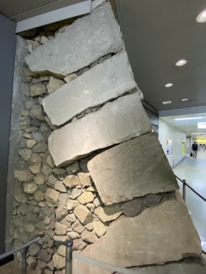 東京メトロ市ヶ谷駅の構内に雉子橋で出土した石を使って当時の石垣づくりを再現展示している。