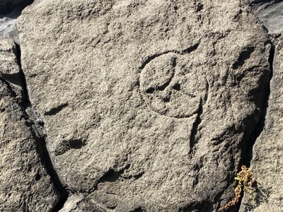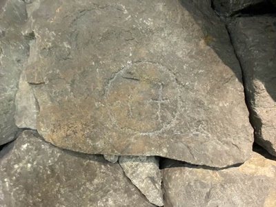 途中で割られて何か危険物の置き場に使われているようだ。