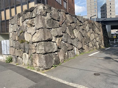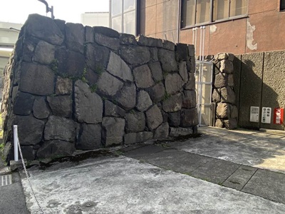 駐車場に残された石垣。大部分は明治6年に撤去。