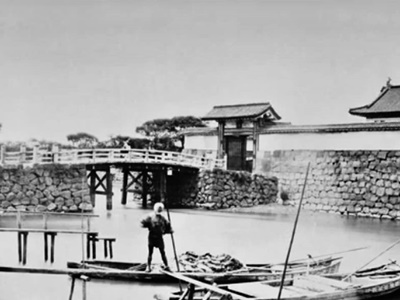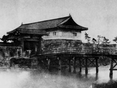 常盤橋門渡櫓・冠木門はこの写真が撮影された2年後の明治6年に取り壊されたそうだ。常盤橋も明治10年に木橋から石橋に架け替えられ、その際「常磐橋」に改名。その後関東大震災後の大正15年にに新たな車道の常盤橋が架けられ、鎌倉橋寄りに市電用に新常盤橋が架けられた。