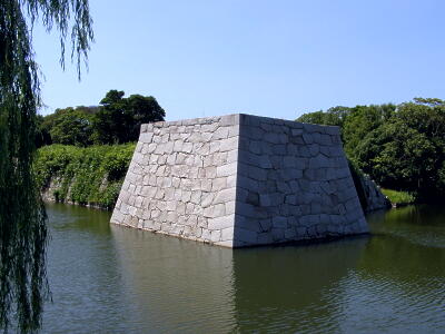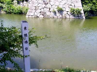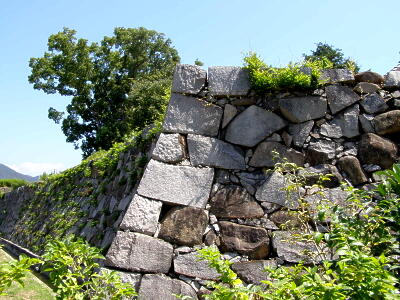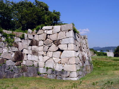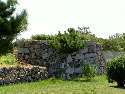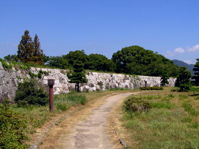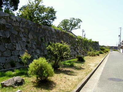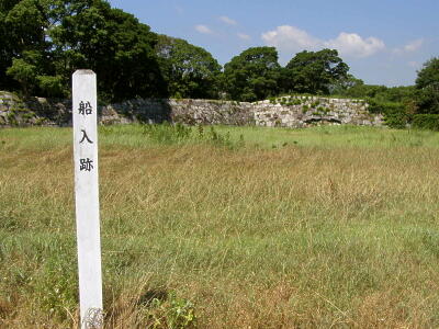 水の手門を外側から。奥は米蔵(現在はそれを模した公衆便所)。