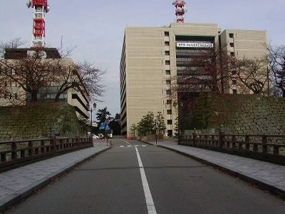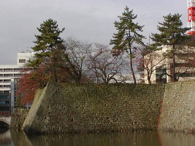 福井城跡は現在県庁、県警察本部など行政の中心地に。藩政の中心地が県政の中心地になったのだからそのままだといえばそのまま、しかし県庁の近代的(新しくはないが)建物は石垣に合わないこと甚だしい。残っているんだか破壊されてるんだかわからん城だ。